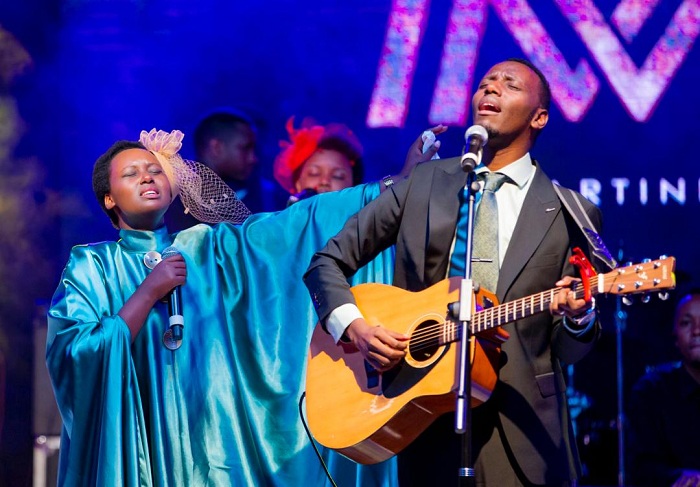 Itsinda ry’abaramyi Papi Clever n’umugore we Dorcas bahembuye imitima y’abitabiriye igitaramo bise ‘Yavuze yego live concert’, cyabereye muri Camp Kigali, banamurika alubumu y’indirimbo 300.