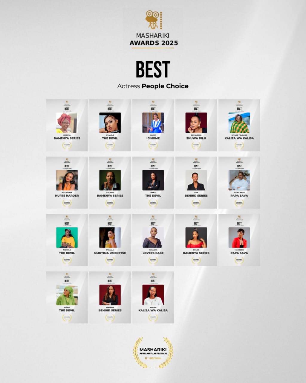 Ubuyobozi bwa Mashariki Film Festival buvuga ko uyu mwaka bwifuje ko bizaba umwihariko, mu rwego rwo gutera inkunga urubyiruko rufite impano rushaka guhindura amateka y’uruganda rwa sinema ku Mugabane wa Afurika, ari na yo mpamvu hashyizweho icyiciro cya People’s Choice.