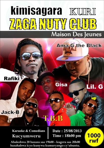 Kuri iki cyumweru tariki 25/08/2013, abahanzi Ama-G The Black, Rafiki, Lil G na bagenzi babo bazataramira abakunzi babo muri Zaga Nuty Club ku Kimisagara imbere ya Maison des Jeunes.