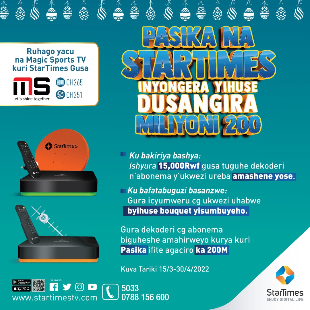 Tubamenyeshe ko kuri ubu StarTimes hari Poromosiyo ya Pasika yiswe Pasika na Startimes, Inyongera yihuse, Dusangira miliyoni 200.