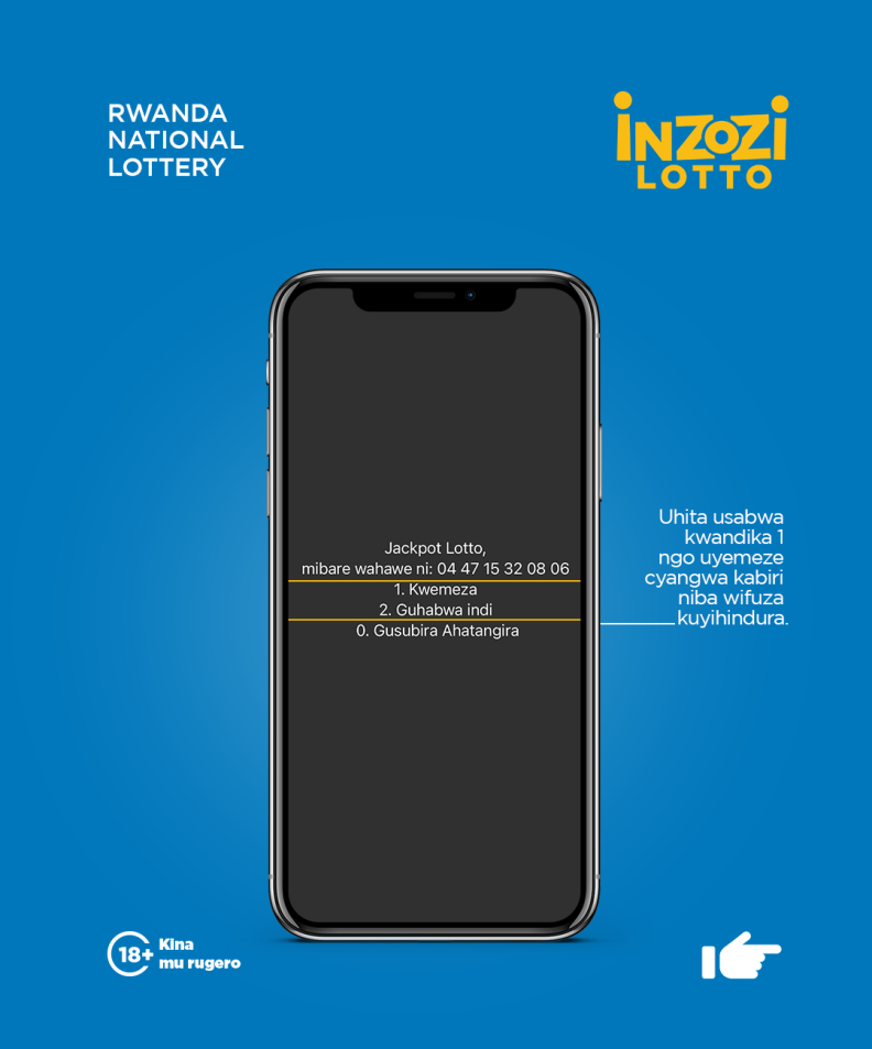 4. Hitamo 1, ahanditse Jackpot lotto, ndetse hakugaragariza itariki nyirizina izatangazwaho abatsinze, nurangiza wemeze.