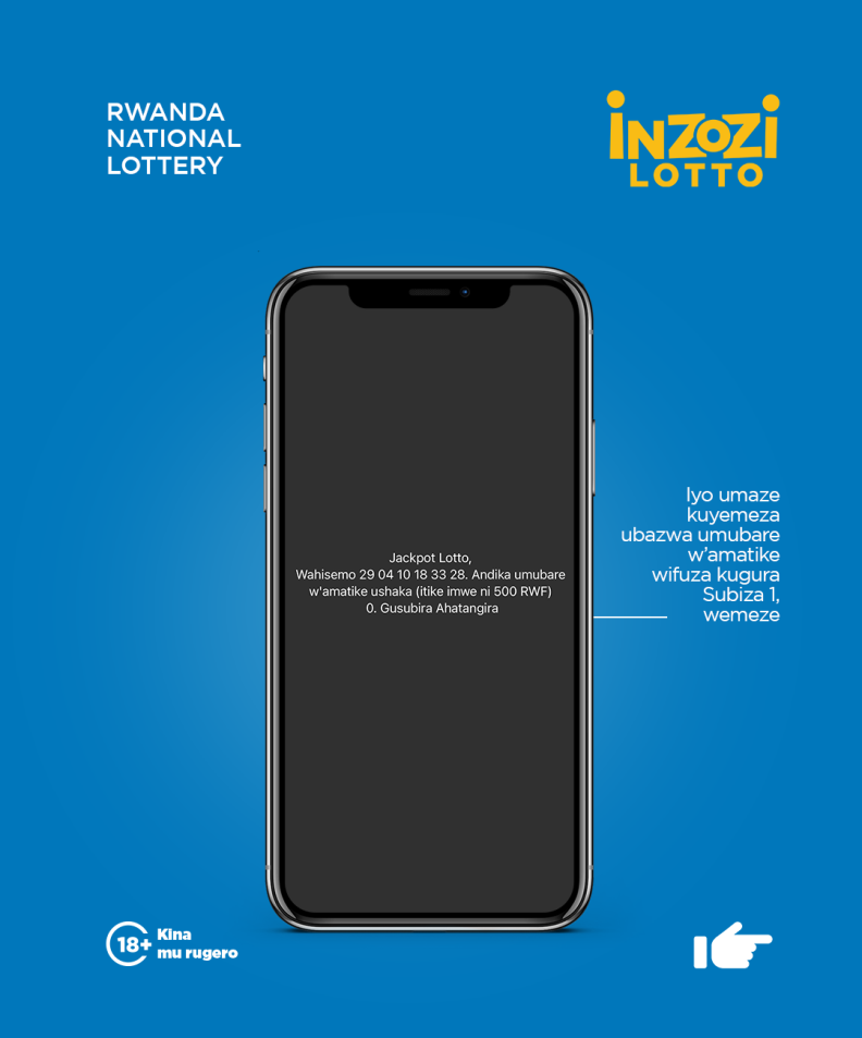 Kombona dimanche mutwereka imibare yatsinze muhuha udutenesi tukabibona muri jackpot, mugitego ho mubigenza gute ko tutabibona Ari ugucunganwa nisaha cg sms, ikindi ni ikibazo ko muvuga ngo abatsinze mucyumweru baba mubabwirwa Niki Kandi imibare iba itaratangazwa, ese aba arabo mucyashize cg nicyo kigezweho