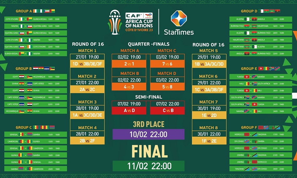 Kurikira imikino y’Igikombe cy’Afurika guhera tariki 13 Mutarama kugeza tariki 11 Gashyantare 2024 mu Cyongereza no mu Kinyarwanda, mu mashusho ya Full HD imbonankubone kuri Sports Premium, Sports Life na Magic Sports.