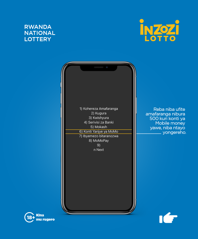 Wicikwa n’amahirwe yo gutsindira 2,000,000 RWF zose hamwe na Inzozi Jackpot Lotto kuko utazi gukina. Dore uko bakina: 1. Reba niba ufite amafaranga nibura 500 kuri konti ya Mobile Money yawe. Niba ntayo, yongereho.