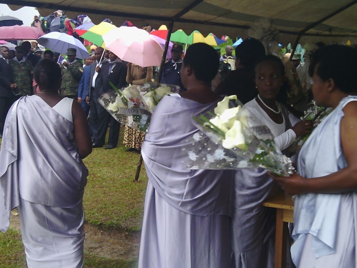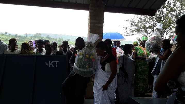 Abaturage b’Umurenge wa Ndora n’inshuti zabo bibukiye ku rwibutso rwa Kabuye ruri mu Mudugudu wa Kabuye, Akagari ka Gisagara mu Murenge wa Ndora. Imvura yari nyinshi.