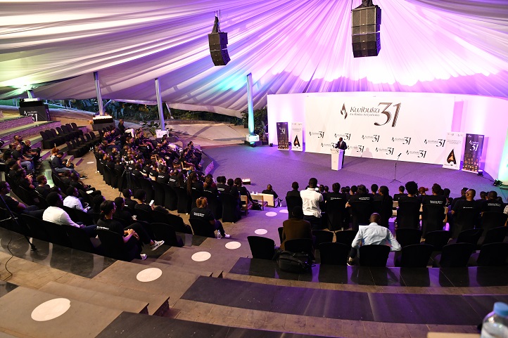 Minisitiri Bizimana yaganirije imiryango itari ya Leta ihuriye ku kurwanya Jenoside, kuvura ibikomere no kubaka amahoro, mu mugoroba wo Kwibuka wabereye ku rwibutso rwa Jenoside rwa Kigali ku Gisozi, ku wa Kabiri tariki 10 Gicurasi 2025.