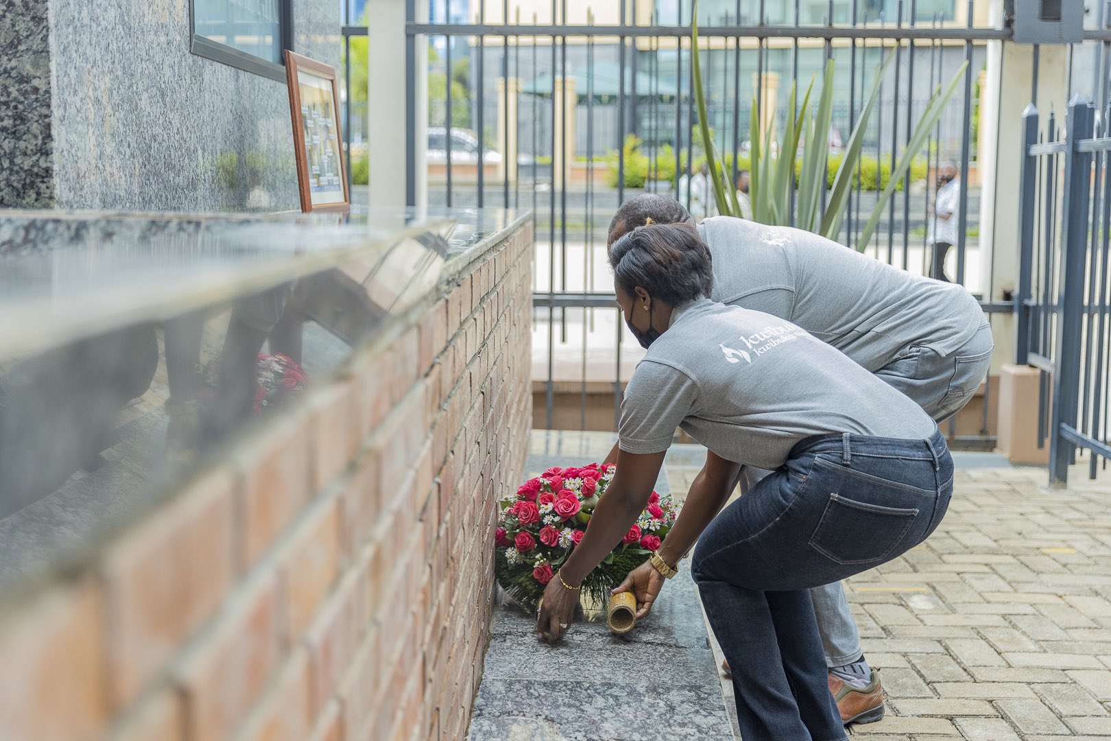 Nyuma yo gusubiza icyubahiro abahoze ari abakozi ba BK, umuhango wo kwibuka wahise ukomereza ku rwibutso rwa Jenoside rwa Kigali, na ho hashyirwa indabo aharuhukiye imibiri isaga ibihumbi 250 y’Abatutsi biciwe mu bice bitandukanye by’Umujyi wa Kigali.