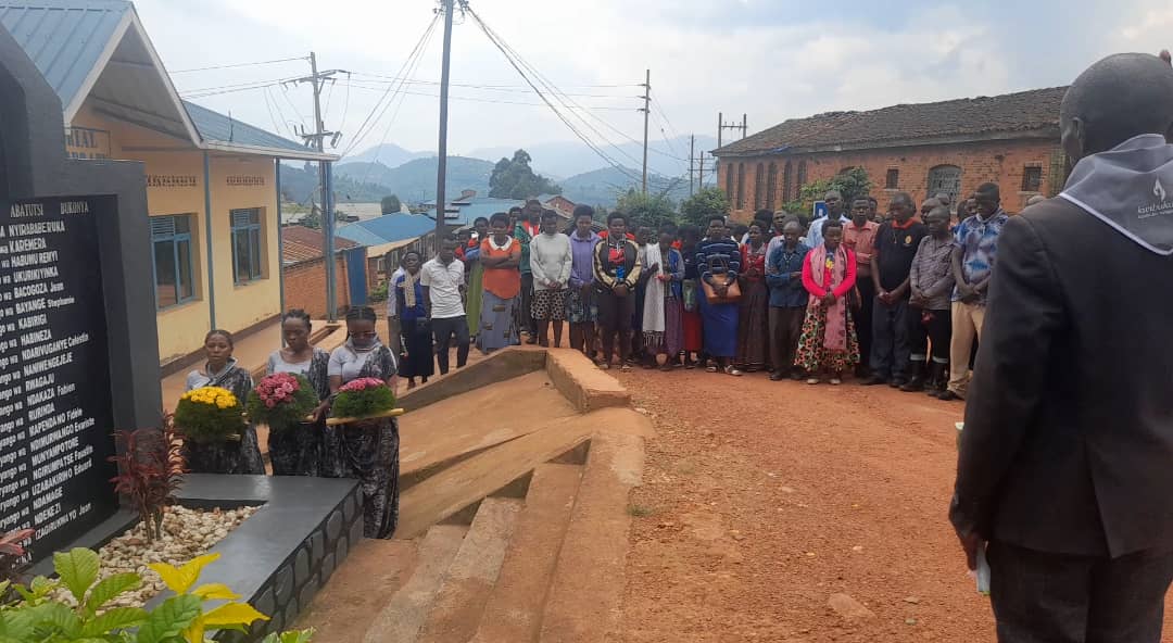 Aba bakozi b’ibitaro bya Gatonde bunamiye banashyira indabo ku rukuta ndangamateka rwanditseho amwe mu mazina y’abazize Jenoside yakorewe Abatutsi, biciwe mu cyahoze ari u Bukonya, nk’ikimenyetso cyo kubasubiza agaciro bambuwe.