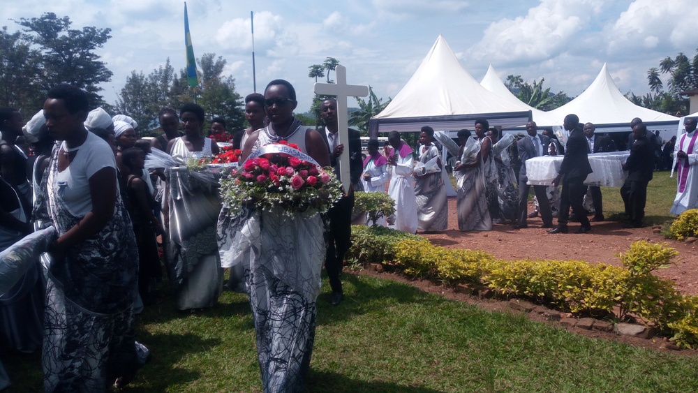 Ati “Birababaje kuba imyaka 25 ishize abandi bashyingura ababo, abandi bakajya no kubasura bakabashyiraho izi ndabo z’icyubahiro, wowe utazi uwawe niba ari no mu mazi ngo ugende izo ndabyo uzinage mu mazi, uruhuke ku mutima.”