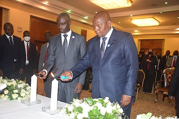 Muri Santrafurika, umuhango wo kwibuka wateguwe ku bufatanye n’Abadipolomate b’u Rwanda bari muri icyo gihugu, ubera mu murwa mukuru Bangui. Ni umuhango witabiriwe n’Umukuru w’icyo gihugu, Faustin Archange Touadera.