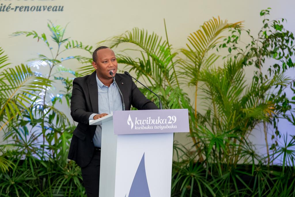 Mwizerwa Eric watanze ubuhamya mu gutangiza kwibuka ku nshuro ya 29 Jenoside yakorewe Abatutsi mu muhango wabereye ku rwibuto rwa Kigali ruri ku Gisozi, yavuze ibihe bigoye yanyuzemo, asobanura uko byamusabye kubeshya abari bagiye kumwica ko ari Umuhutu, ku bw’amahirwe ararokoka.