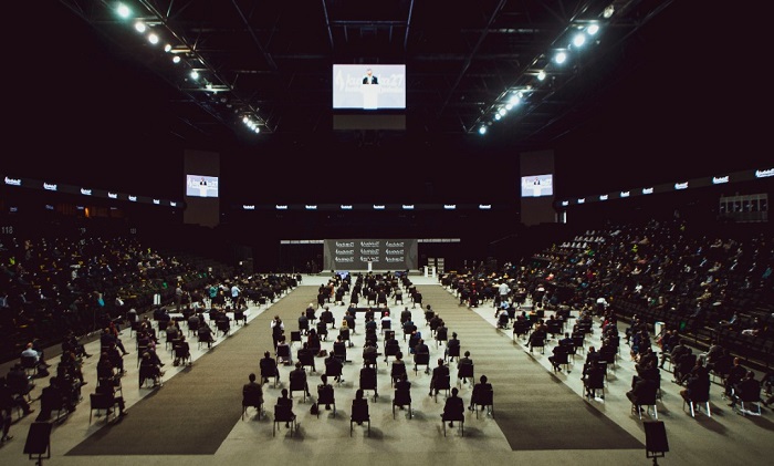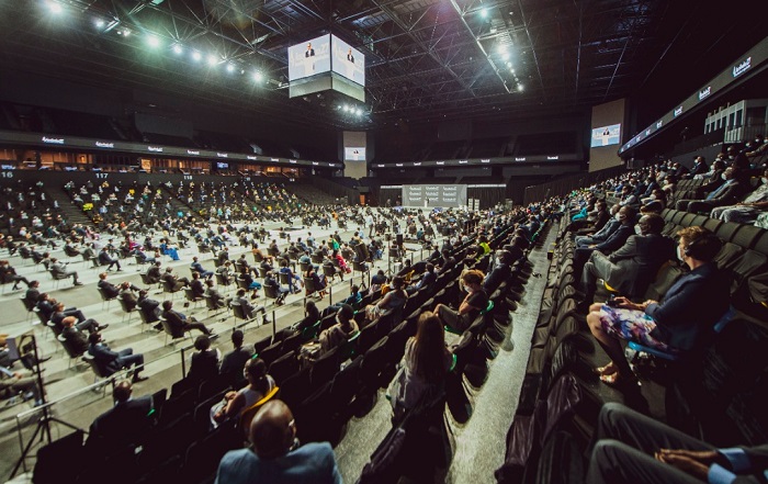 Mu nyubako ya Kigali Arena ni ho hari hateguwe, hahurira abitabiriye ibiganiro byo kwibuka, ariko hakaba hahuriye Abayobozi bakuru b’Igihugu, abahagarariye ibihugu byabo n’imiryango mpuzamahanga, ndetse n’abayobozi b’ibyiciro bitandukanye by’Abanyarwanda.