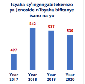Imibare y’ibirego RIB yakiriye ikanagenza, igaragaza ko ibyaha by’Ingengabitekerezo ya Jenoside n’ibiyishamikiyeho byagabanutse bivuye kuri 542 mu mwaka wa 2018, bigera kuri 530 mu mwaka wa 2020.