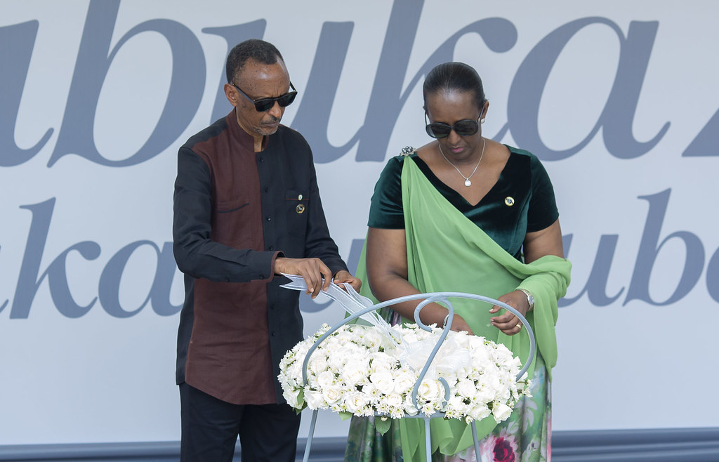 Muri uwo muhango, Perezida Kagame na Madamu Jeannette Kagame bunamiye inzirakarengane zisaga ibihumbi 250 zishyinguye muri urwo rwibutso, ahashyizwe indabo ku mva baruhukiyemo, hanacanwa urumuri rw’icyizere.