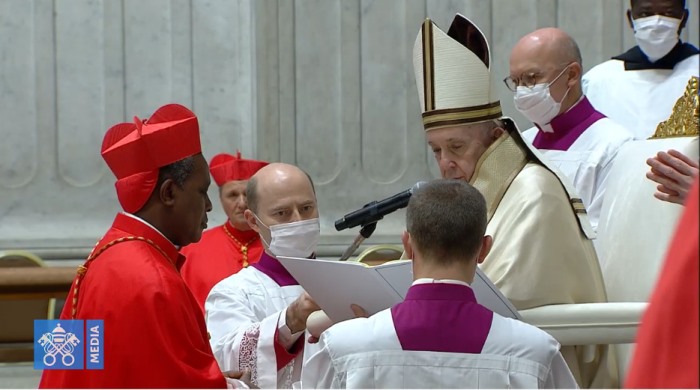 Arikiyepisikopi wa Kigali, Kambanda Antoine, uherutse kugirwa Karidinali na Papa Francis, kuri uyu wa Gatandatu tariki 28 Ugushyingo 2020, we n’abandi 12 barahabwa imyambaro yagenewe Abakaridinali.