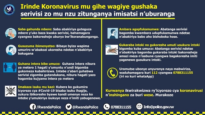 Polisi y’u Rwanda iratangaza ko mu gihe inzu zitunganya imisatsi n’uburanga zongeye gufungura, ari ingenzi ko mu gihe abantu bagiye guhabwa serivisi, babikora bagendeye ku mabwiriza yo kwirinda Covid-19.