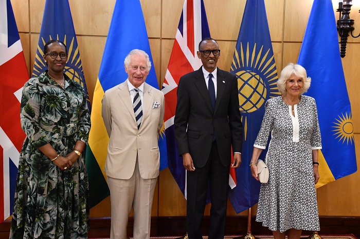 Perezida Paul Kagame na Madamu Jeannette Kagame, kuri uyu wa Gatatu tariki 22 Kamena 2022, muri Village Urugwiro, bakiriye Igikomangoma cya Wales, Charles Philip n’umugore we Camilla.