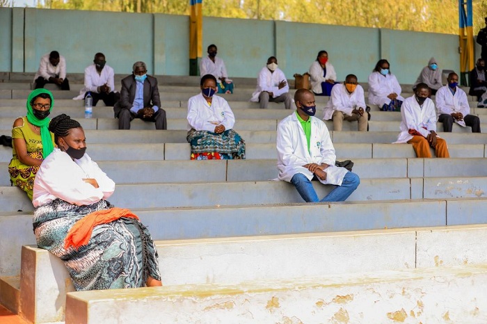 Abaturage bo mu mujyi wa Musanze barimo abenshi bageze mu zabukuru mu mpera z’iki cyumweru bishimiye gufata urukingo rwa COVID-19 rwa Johnson & Johnson, igikorwa cyabereye muri Sitade Ubworoherane muri ako Karere.