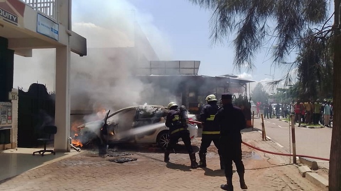 Ishami rya Polisi y’Igihugu rishinzwe kurwanya umuriro, ryahangana n’inkongi itunguranye yafashe imodoka ifite pulake ya RAD500U, yahiriye ahitwa mu Migina, ahegereye Stade Amahoro.