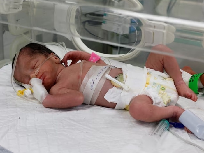 Uruhinja rw’umwana w’umukobwa rwatabawe n’abaganga baruteruye munda ya nyina wari umaze guhitanwa na bombe we n’umugabo we hamwe n’umukobwa we, mugitero cyagabwe na Israel mu mujyi wa Rafah mu ntara ya Gaza cyabaye mu ijoro ryo ku itariki 21 Mata 2024.