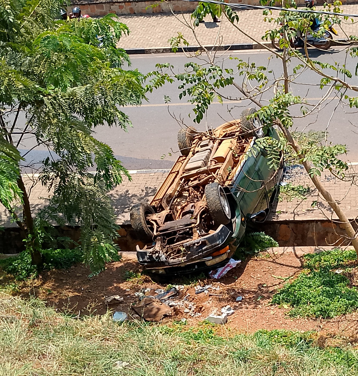 Mu Mujyi wa Kigali munsi y’ikibuga baparikamo imodoka nto, imbere y’inzu izwi nka ‘Downtown’ imodoka y’ijipe itari irimo umuntu yimanuye, iragenda irenga umukingo, igwa mu muferege wa sima uri ku muhanda muto w’ibumoso umanuka uva kuri Downtown.