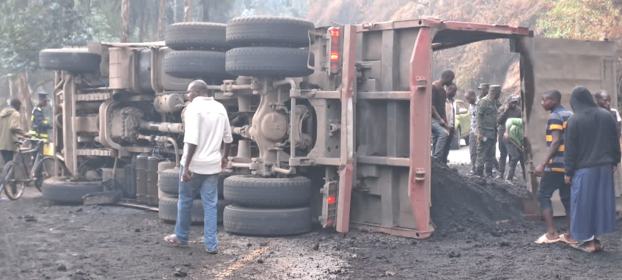 Imodoka yo mu bwoko bwa HOWO yaturukaga mu muhanda wa Rubavu yerekeza i Musanze, yahirimye mu muhanda igonga ikamyo ya rukururana ndetse n’imodoka yo mu bwoko bwa RAV4.