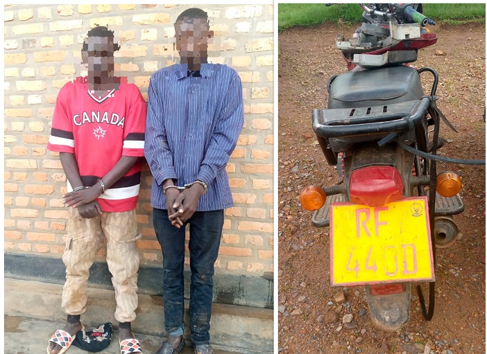 Polisi y’u Rwanda ku bufatanye n’izindi nzego z’umutekano n’abaturage mu Karere ka Gakenke, yafashe abasore babiri bacyekwaho kwiba moto yo mu bwoko bwa TVS bagiye kuyigurisha.
