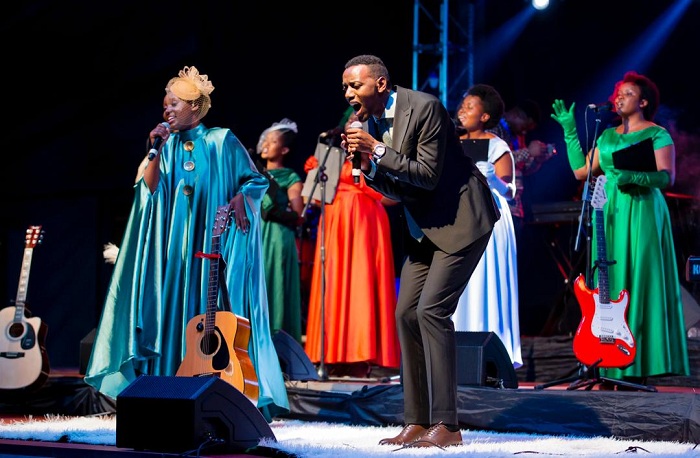 Itsinda ry’abaramyi Papi Clever n’umugore we Dorcas bahembuye imitima y’abitabiriye igitaramo bise ‘Yavuze yego live concert’, cyabereye muri Camp Kigali, banamurika alubumu y’indirimbo 300.