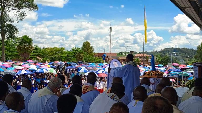 Mu gihe ku munsi wa Asomusiyo ubusanzwe i Kibeho hateranira ababarirwa mu bihumbi 50, uyu munsi tariki 15 Kanama 2024 haje abikubye hafi kabiri.