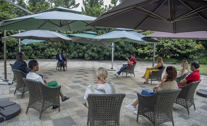 Perezida Paul Kagame, kuri uyu wa Gatatu tariki 09 Gashyantare 2022 yakiriye mu biro bye, Village Urugwiro, abahoze bakinira Arsenal ndetse bakayikoramo amateka akomeye ari bo Robert Pires na Ray Parlour, ndetse n’abo bari kumwe bo mu miryango yabo.
