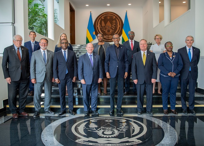 Perezida Paul Kagame, ku gicamunsi cyo kuri uyu wa Gatanu tariki 19 Kanama 2022, muri Village Urugwiro, yakiriye itsinda ry’intumwa za rubanda ziturutse muri Leta Zunze Ubumwe za Amerika.