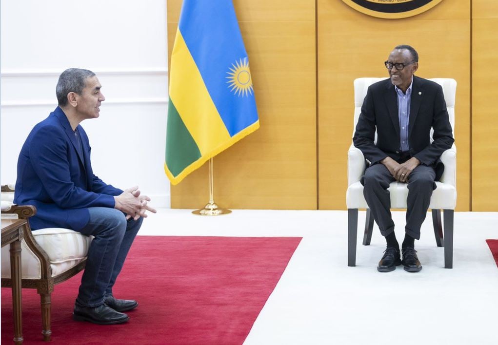 Perezida Paul Kagame yakiriye Prof. Dr. Uğur Şahin, washinze akaba n’umuyobozi mukuru wa BioNTech Group n’intumwa ayoboye aho yitabiriye umuhango wo gutangiza Ikigo Nyafurika gikora inkingo (BioNTech Africa).