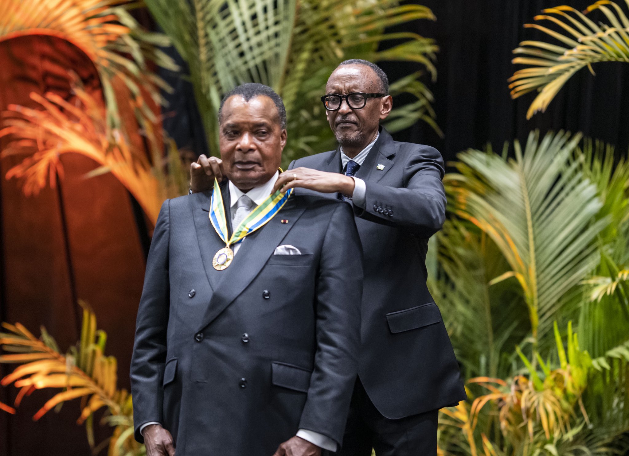 Perezida Paul Kagame ku mugoroba wo ku wa Gatanu tariki 21 Nyakanga 2023, yambitse mugenzi we wa Repubulika ya Congo Denis Sassou-Nguesso, umudali w’icyubahiro witwa ‘Agaciro’ ku bw’imiyoborere ye idasanzwe.