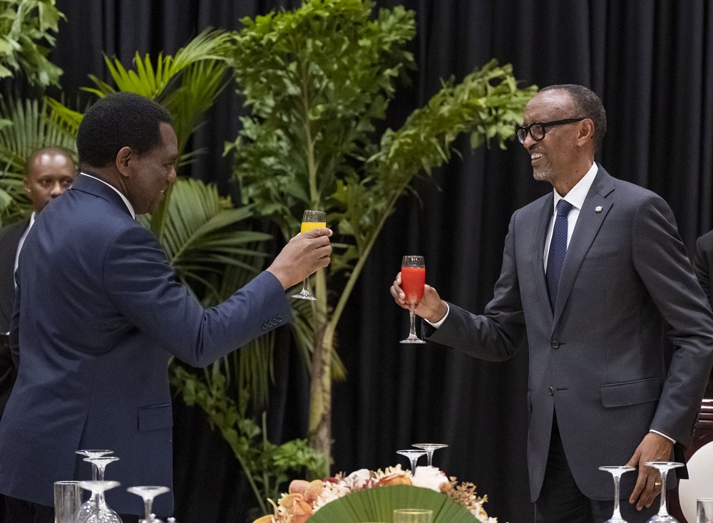 Perezida Paul Kagame yakiriye ku meza mugenzi we wa Zambia, Hakainde Hichilema, uri mu ruzinduko rw’iminsi ibiri mu Rwanda.