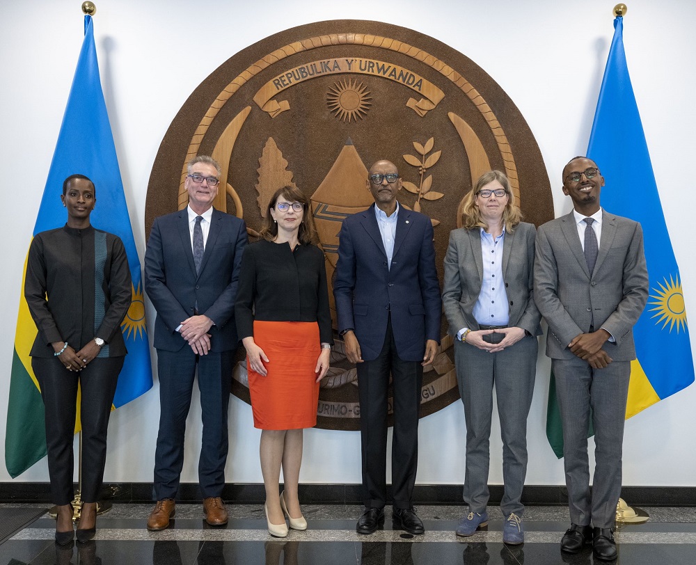 Perezida wa Repubulika Paul Kagame yakiriye abayobozi baturutse muri Volkswagen aho bari mu Rwanda mu rwego rwo kwizihiza isabukuru y’imyaka itanu y’ubufatanye buri hagati y’u Rwanda n’uru ruganda.