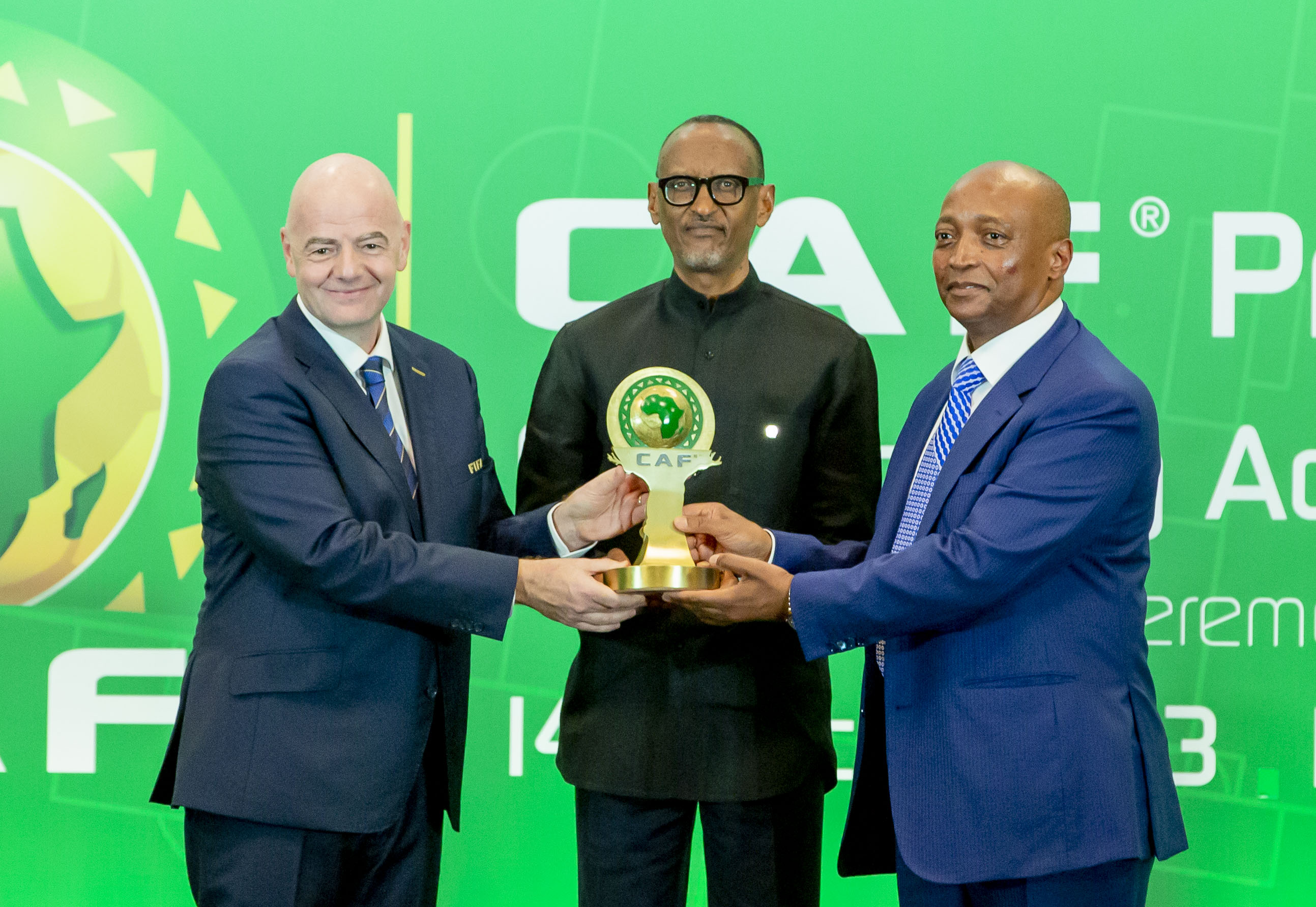 Perezida Paul Kagame yahawe igihembo nk’uwakoze ibikorwa by’indashyikirwa mu guteza imbere siporo by’umwihariko umupira w’amaguru, iki gihembo akaba yagiherewe mu muhango wabereye i Kigali muri Serena Hotel.