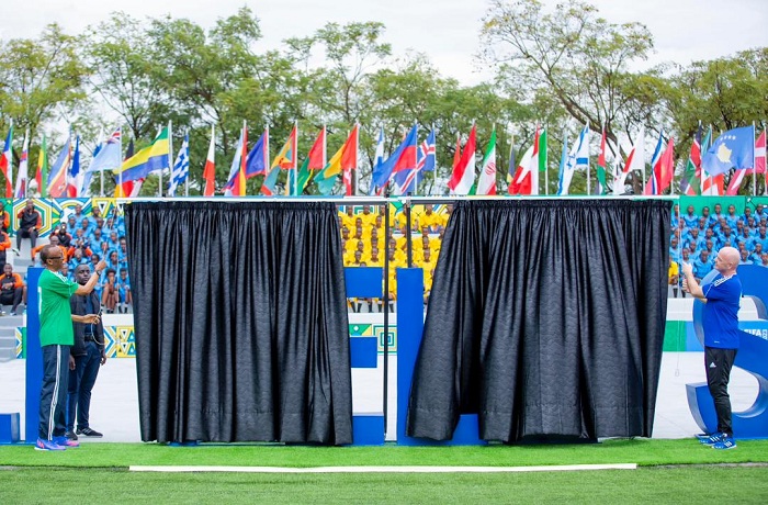 Perezida Paul Kagame na Perezida wa FIFA, Gianni Infantino, bafunguye ku mugaro Stade ya Kigali yamaze guhabwa izina rya Kigali Pelé Stadium.