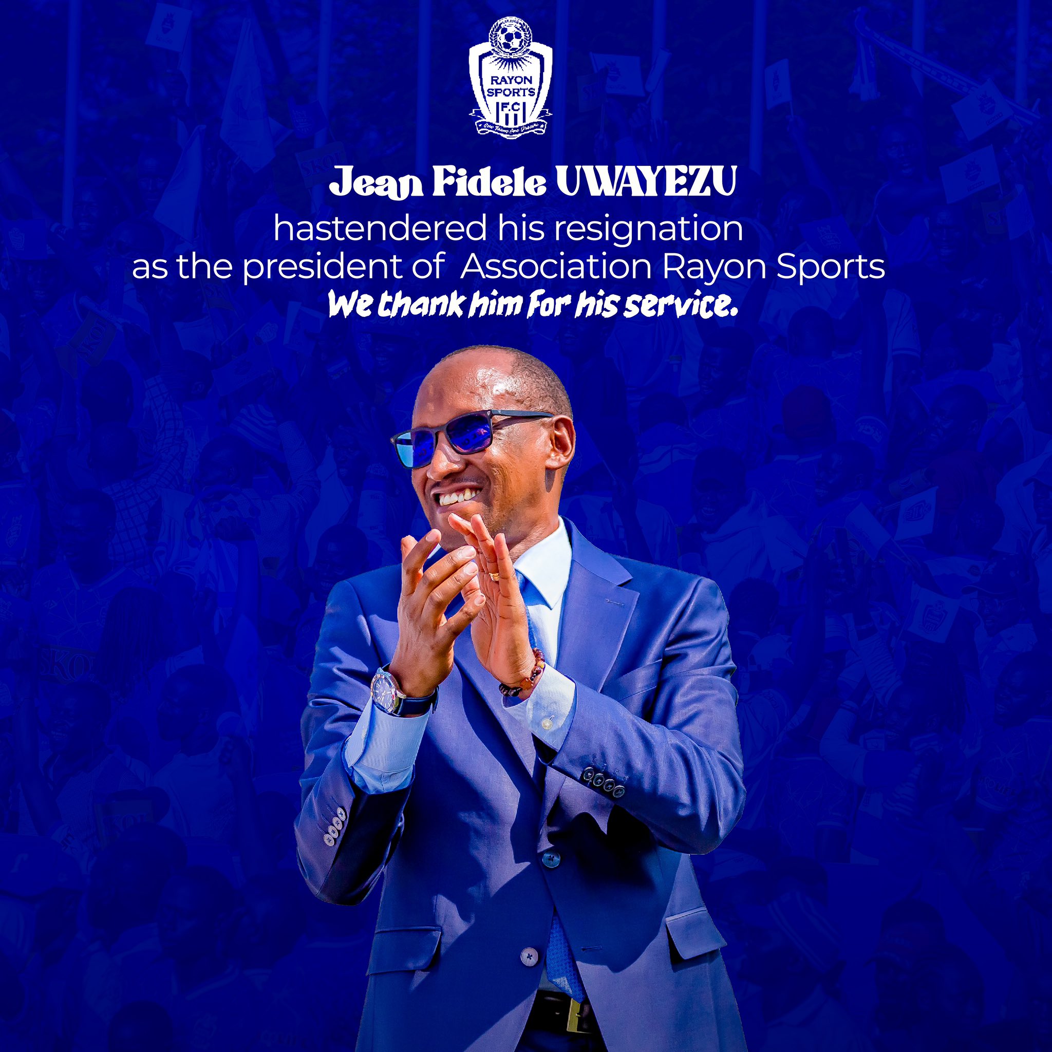 Uwari Perezida wa Rayon Sports Jean Fidele Uwayezu yamaze kwegura ku mirimo ye, bivugwa ko ari impamvu z’uburwayi