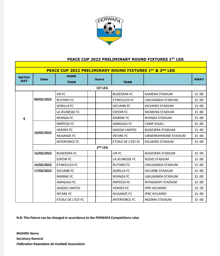 Ishyirahamwe ry’umupira w’amaguru mu Rwanda ryatangaje amatariki mashya y’igikombe cy’Amahoro, ndetse n’ikizagenderwaho mu guhuza amakipe mu majonjora azakurikiraho