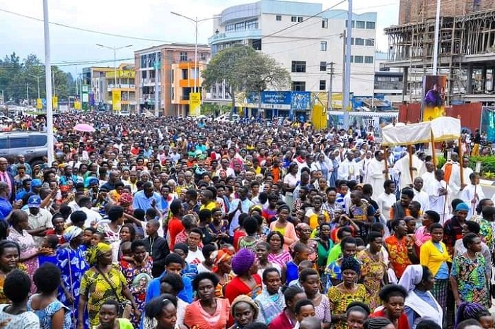 Ntibyari bisanzwe kubona imbaga y’abantu basaga ibihumbi bitanu mu muhanda, ariko ku munsi mukuru w’Isakaramentu Ritagatifu, nyuma y’igitambo cya Misa cyahimbajwe na Musenyeri Vincent Harolimana, Umushumba wa Diyosezi Gatolika ya Ruhengeri, Umutambagiro w’Isakaramentu wabereye mu Mujyi wa Musanze waciye agahigo mu kwitabirwa (…)
