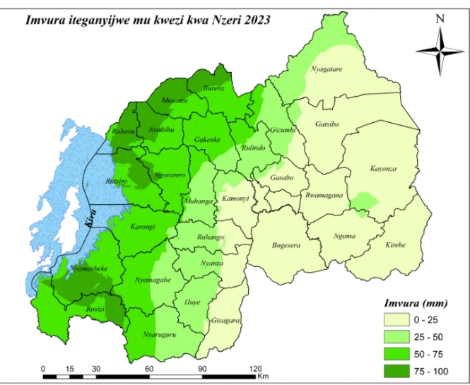 Iteganyagihe ry’iminsi 10 isoza uku kwezi kwa Kanama 2023 (kuva tariki 21-31), rigaragaza ko ahenshi mu Gihugu nta mvura izaboneka, ndetse ko hazabaho ubushyuhe bwinshi bugera kuri dogere Selisiyusi 32 (⁰C) i Kigali, Iburasirazuba, Amayaga n’i Bugarama(Rusizi).