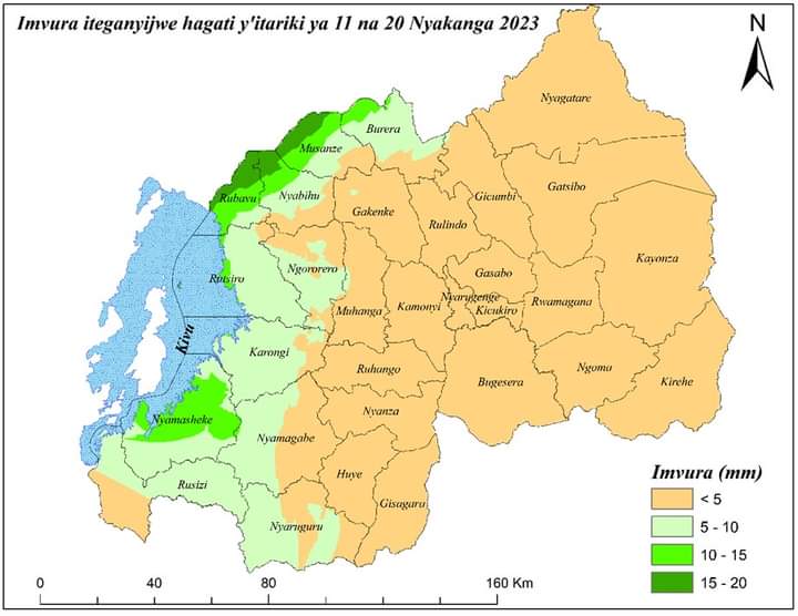 Ikigo gishinzwe Ubumenyi bw’Ikirere (Meteo-Rwanda), kigaragaza ko mu gice cya mbere cy’ukwezi kwa Nyakanga 2023 (kuva tariki ya 1 ku ya 10), henshi mu Gihugu nta mvura izaboneka, ndetse n’ibice izagwamo ikaba itazarenga milimetero 20.