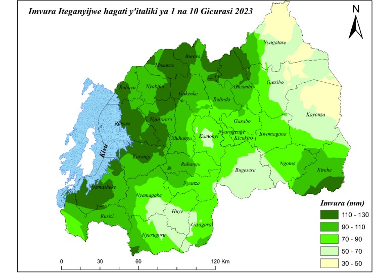 Ikigo gishinzwe Ubumenyi bw’Ikirere (Meteo-Rwanda), cyatangaje Iteganyagihe ry’iminsi 10 y’igice cya gatatu gisoza ukwezi kwa Mata 2023, rigaragaza ko hazagwa imvura irengeje gato ikigero cy’impuzandengo y’isanzwe igwa muri iki gihe.