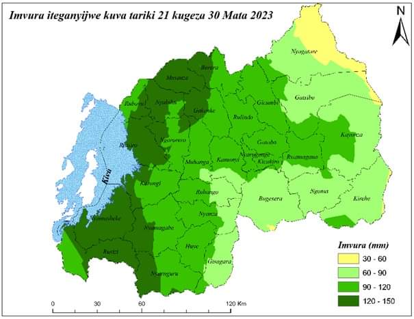 Ikigo gishinzwe Ubumenyi bw’Ikirere (Meteo-Rwanda), kivuga ko mu Rwanda hateganyijwe imvura igwa buri munsi yikurikiranya mu minsi ine, kuva tariki ya 1 kugeza ku ya 4 Gicurasi 2023.