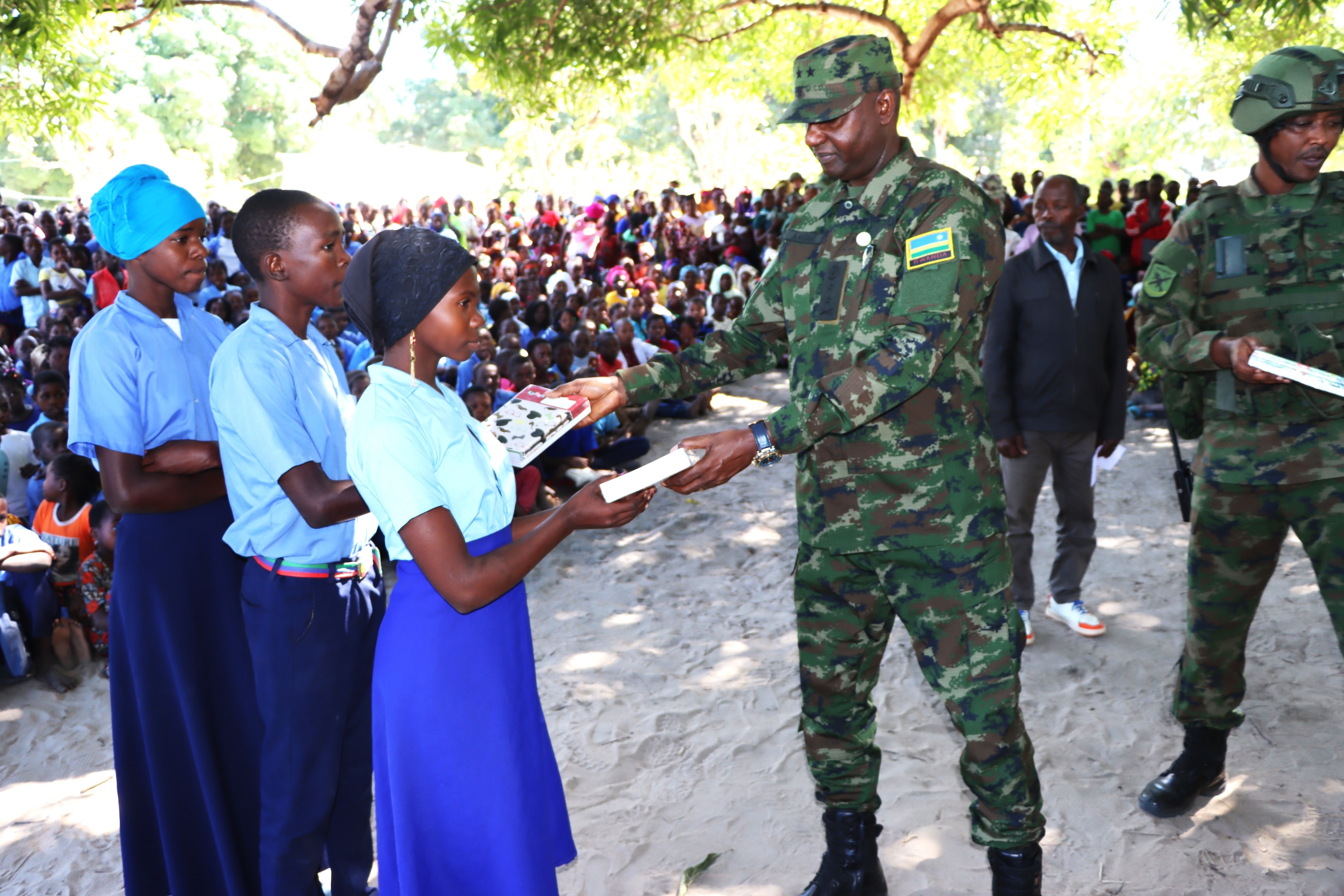 Mu muhango wayobowe n’Umuhuzabikorwa w’Inzego z’Umutekano z’u Rwanda ziri muri Mozambique, Maj Gen Alex Kagame abaturage bo mu Karere ka Mocimboa Da Praia bashyikirijwe ikigo cy’amashuri abanza cya Escola Primaria de Ntotwe nyuma yo kongera kugisana no kubaka ibyari byarangijwe n’ibyihebe.