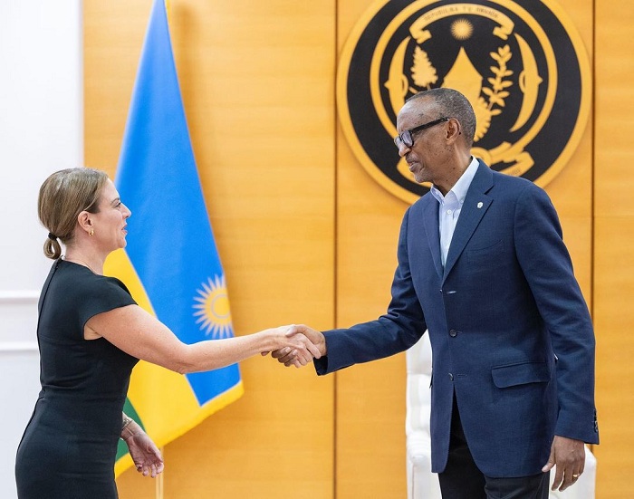 Perezida Paul Kagame yakiriye muri Village Urugwiro, anagirana ibiganiro na Deborah Calmeyer, umuyobozi akaba n’uwashinze ikigo ROAR Africa, kigamije guteza imbere ubukerarugendo muri Afurika.