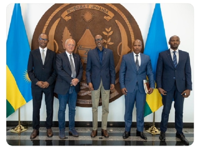 Perezida Kagame yakiriye Prof. Dr Guillaume Marescaux washinze ndetse akaba na Perezida w’ Ikigo gikora ubushakashatsi kikanatanga amasomo mu kubaga umuntu hifashishijwe ikoranabuhanga (IRCAD Africa) hamwe n’intumwa bari kumwe.