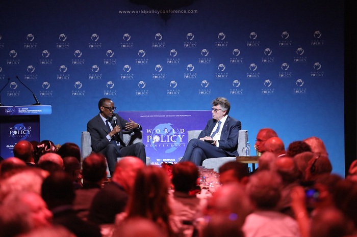 Perezida Kagame ni umwe mu batanze ikiganiro mu nama ya 12 y’uwo muryango witwa World Policy Conference washinzwe na Thierry de Montbrial.