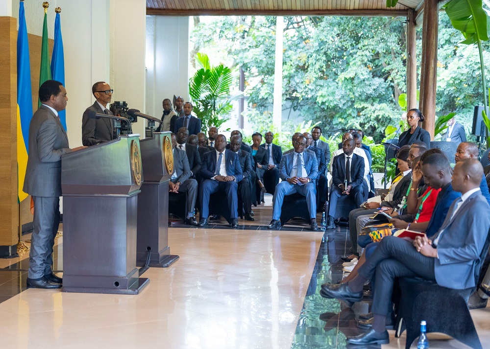 Aha Perezida Kagame yagaragaje ko amahoro n’umutekano ari inkingi ikomeye ibihugu byombi byubakiyeho mu gushakira umuti ibibazo by’ubukungu n’imibereho myiza y’ababituye.