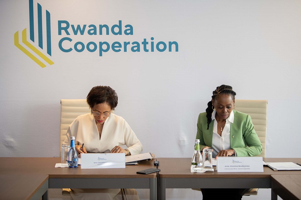 Umuyobozi w’Ikigo cy’Igihugu gishinzwe Ubutwererane ari cyo ‘Rwanda Cooperation’ Ambasaderi Christine Nkulikiyinka, n’Umuyobozi w’Ikigo cya Comoros cy’Ubutwererane Mpuzamahanga (Agence Comorienne de Coopération Internationale - ACCI), Madamu Fatoumia Bazi, kuri uyu wa Gatatu tariki 21 Kamena 2023, bashyize umukono ku masezerano y’ubufatanye n’ubutwererane hagati y’ibigo byombi.